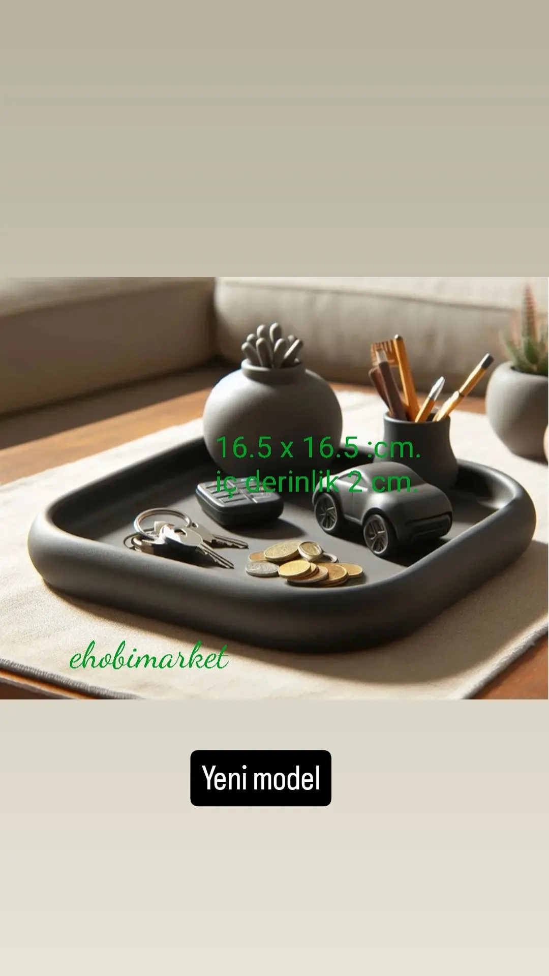 16.5 cm × 16.5 cm ic derinlik 2 cm